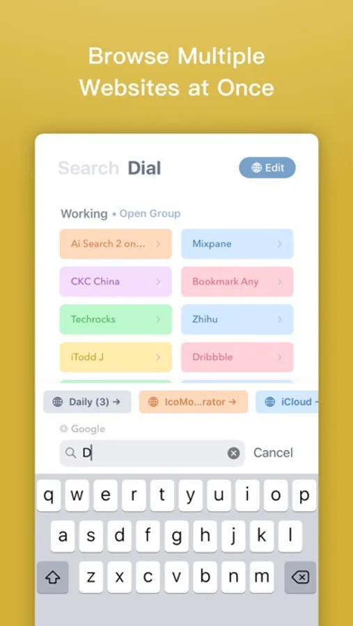 Customize most used websites, and open them in a single tap.