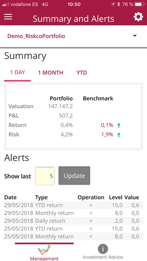 Customized risk-returns alerts of the overall portfolio – not only regarding individual assets- will be delivered meaning you can react quickly.