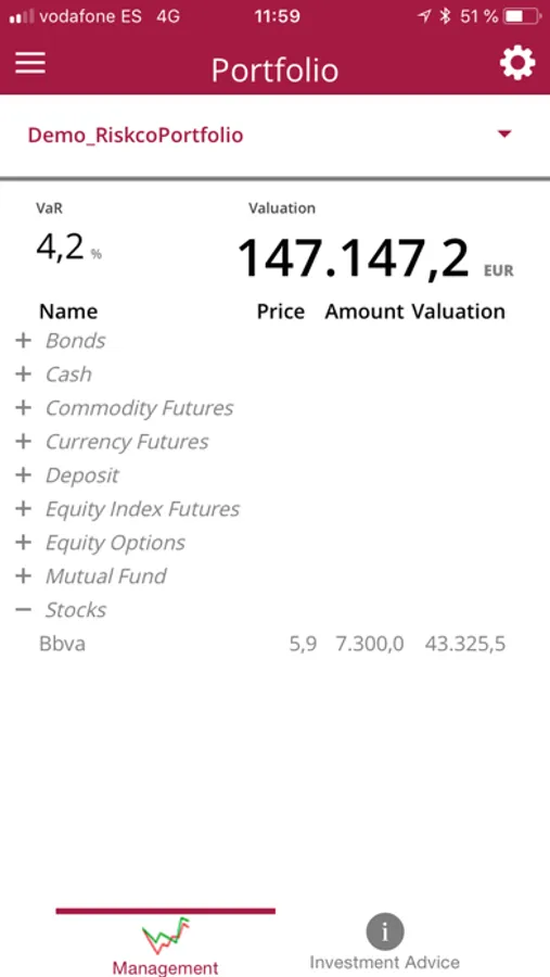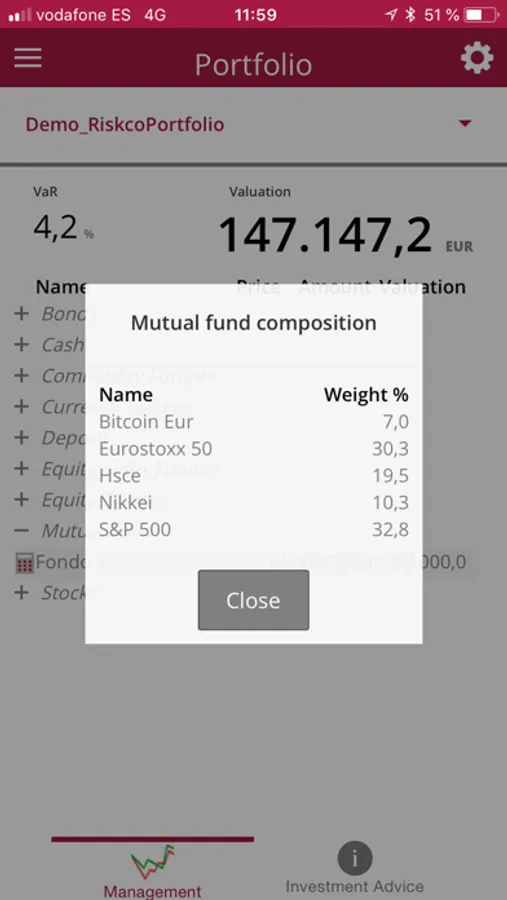 To facilitate the learning of the tool you have at your disposal the Demo_RiskcoPortfolio portfolio.