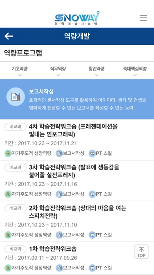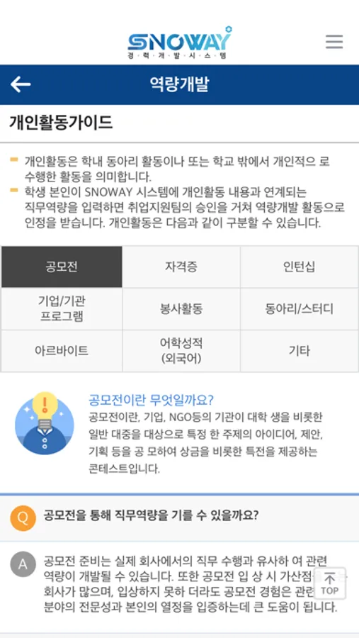 SNOWAY는 숙명여자대학교가 정의한 역량을 중심으로 경력 관리를 가이드하는 "학생 경력개발 시스템"입니다.