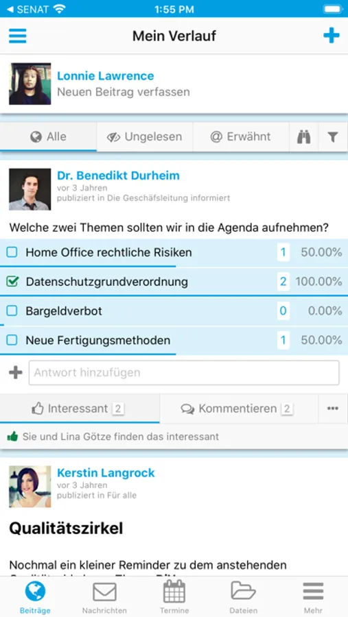 • Lesen, Kommentieren und Erstellen von Beiträgen