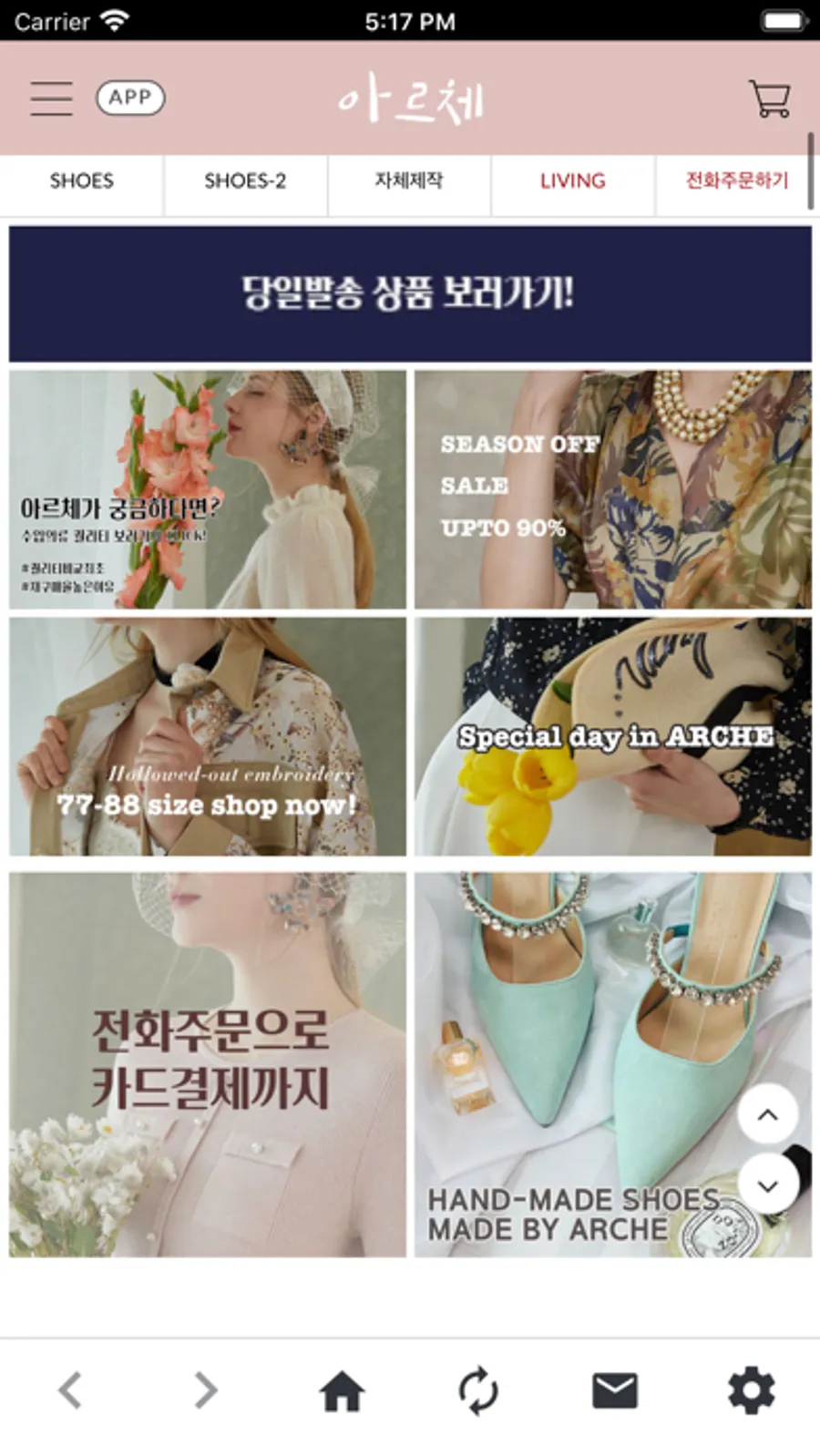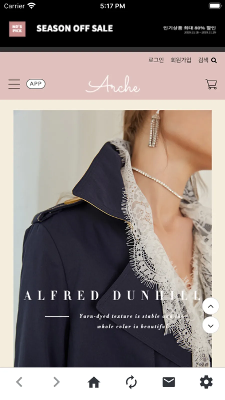 아르체 APP은 웹사이트와 100%연동되어 있으며, 언제 어디서든 스마트폰으로 쇼핑을 즐기실 수 있는 쇼핑전용 어플리케이션입니다.