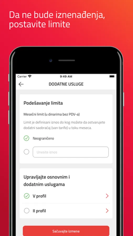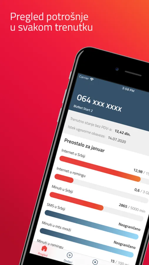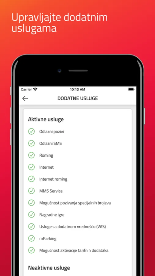 • Uvid u aktivne tarifne dodatke i dodatne usluge,