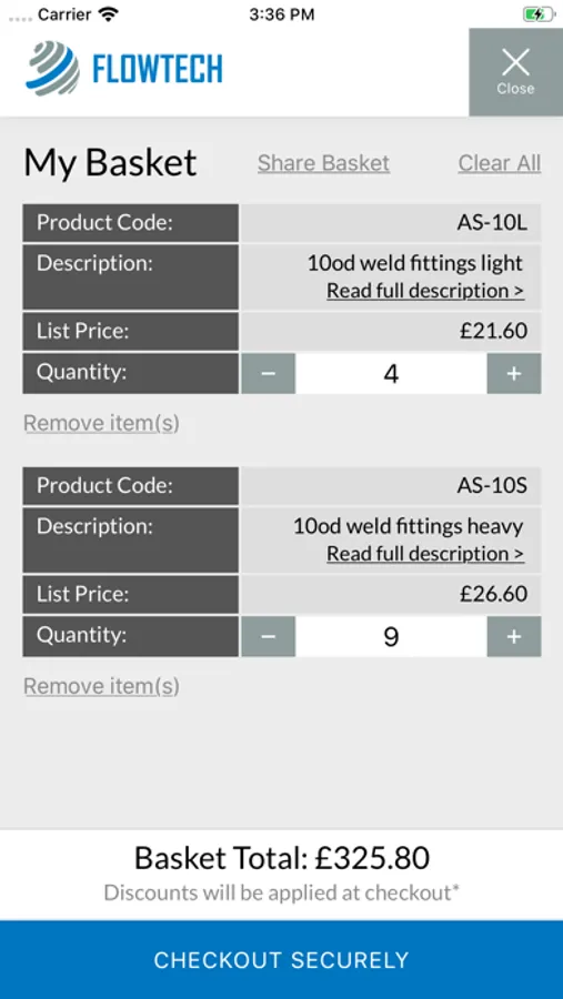 - Share basket functionality; easily share your baskets with others via clipboard/messages/mail and more