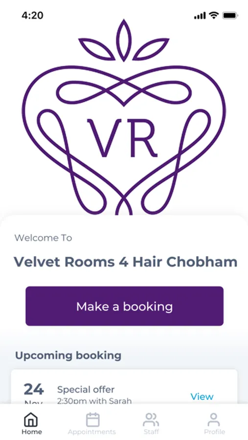 The Velvet Rooms 4 Hair Chobham app makes booking your appointments and managing your loyalty points even easier. You're just a few taps away from feeling good and looking great!