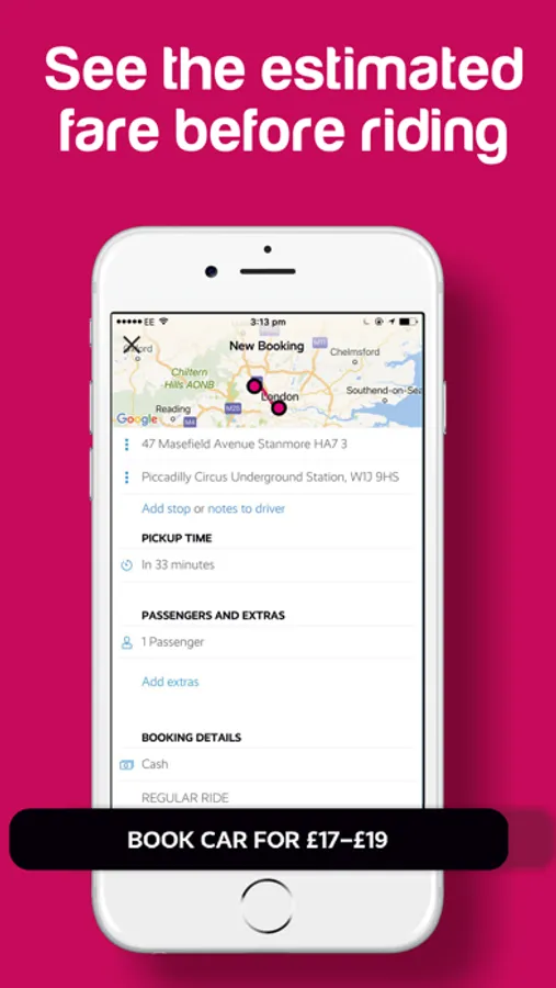 Pricing works on either a fixed price or variable price depending on the journey and distance. Variable fares are calculated by time and distance – fares normally fall within the journey estimate displayed on the app before you book. We accept both cash and card payments. And finally, you’ll be pleased to know that there’s no surge!