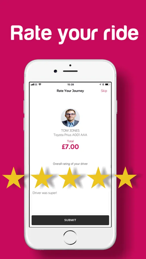 Order your ride in a few taps, re-book by using your journey history, know who’s picking you up (TOM driving a BLACK MERCEDES LP65 HNM is 6 minutes away) and rate your driver with our must have app!
