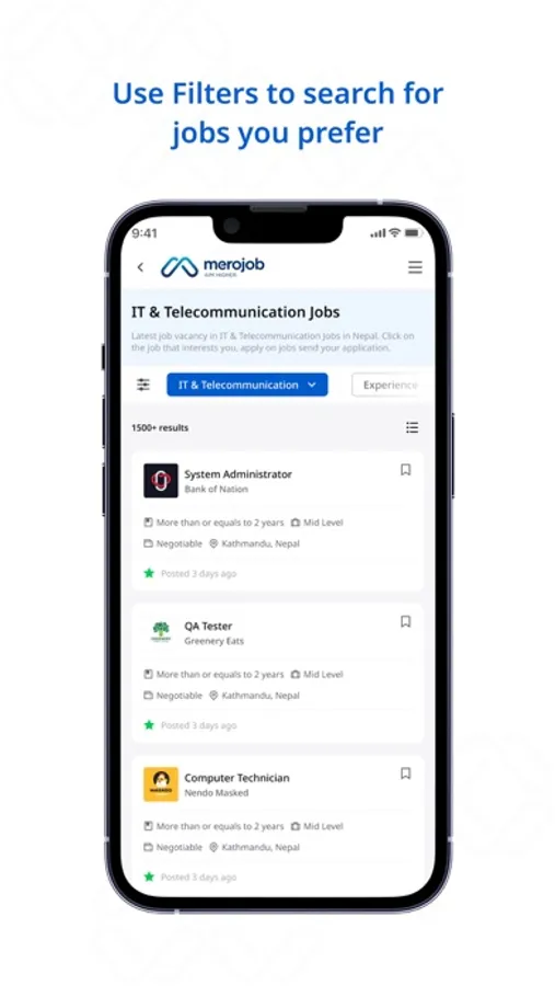 The employer dashboard at merojob facilitates employers like you register your esteemed organization, post jobs and use the simplified shortlisting process to hire the best in few clicks with technology-guided tools. Customized platform provided to job seekers, on the other hand, let them register, search, apply and get jobs for free. Blogs related to job preparation and career development with survey reports from different college and outdoor events have lend a hand to many get the right opportunities in the job market of Nepal.