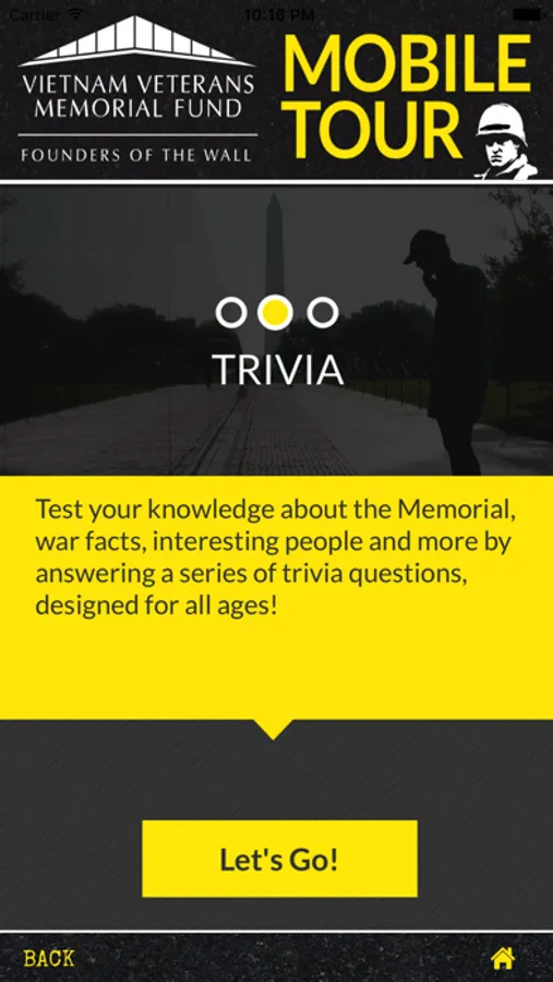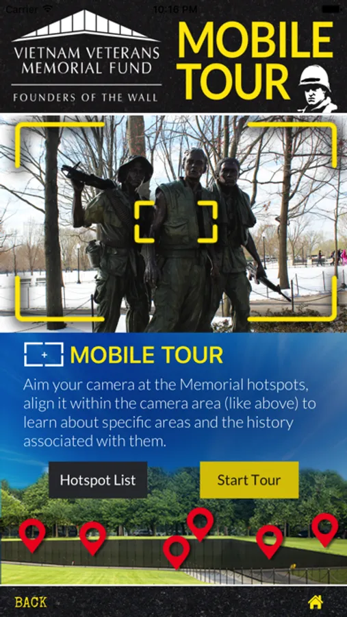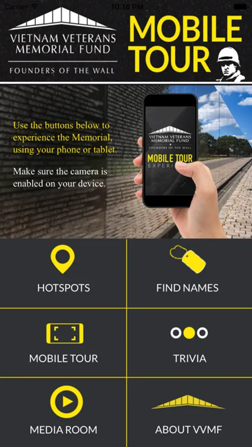 VVMF Mobile Tour is an app that allows visitors to the Vietnam Veterans Memorial, in Washington, DC, interact with site using in a completely immersive way, using their mobile devices. The Mobile Tour uses augmented reality and geolocation technology to educate visitors on various elements of the Memorial, through videos, stories, a game and a first-of-its-kind 360 degree tour on the National Mall. It's purpose is to provide historical context about the site, share personal stories and honor the men and women who fought, died or remain missing in action.