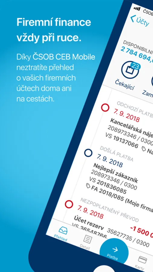 ČSOB CEB Mobile is free of charge, payment and other operations are charged according to the Price list of products and services.