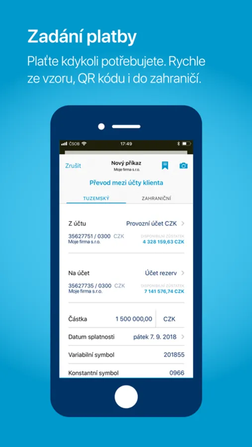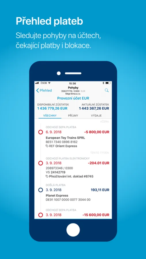Just use ČSOB Smart Key to login and make payments. If you are already a Smart Key user, you can proceed with ČSOB CEB Mobile login immediately after download.