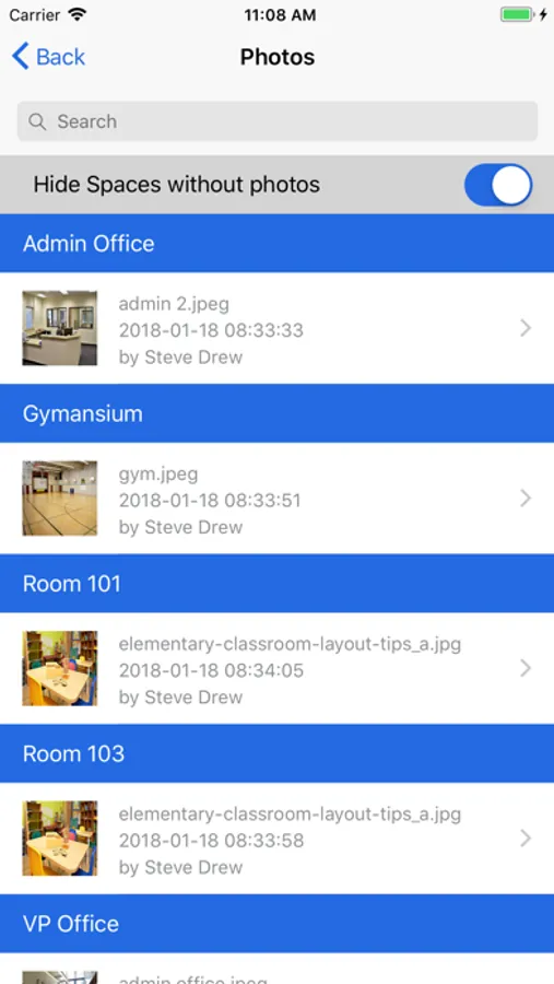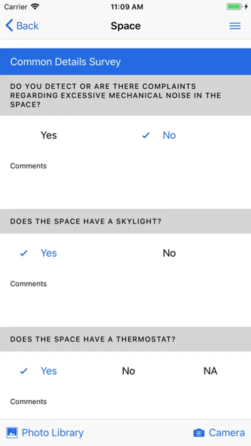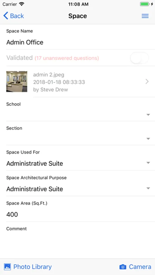 Surveys are broken down in multiple sections depending on the SpacePlanner(tm) Survey configuration in AssetPlanner(tm). An inventory of Program Spaces can also be completed which includes capturing the details of the space such as size, illuminance, window and conformance to standards. Specific data can be captured depending on the space type.
