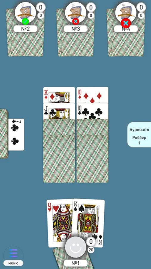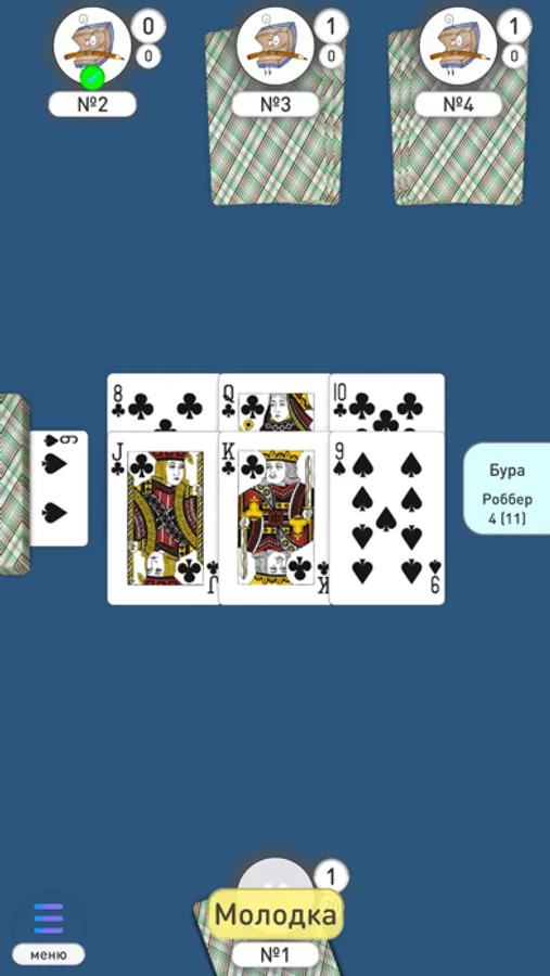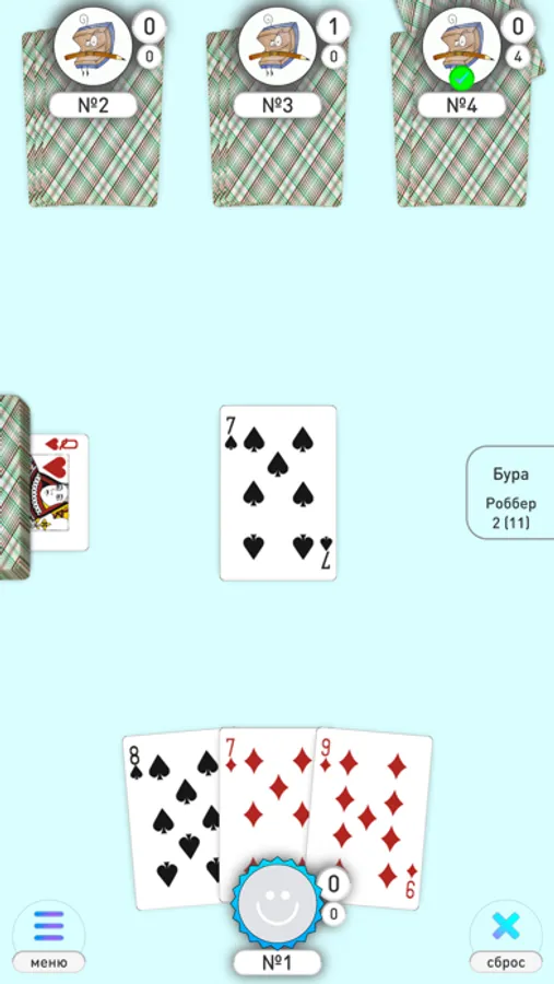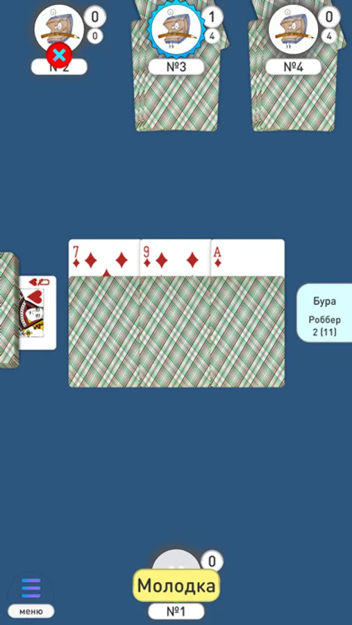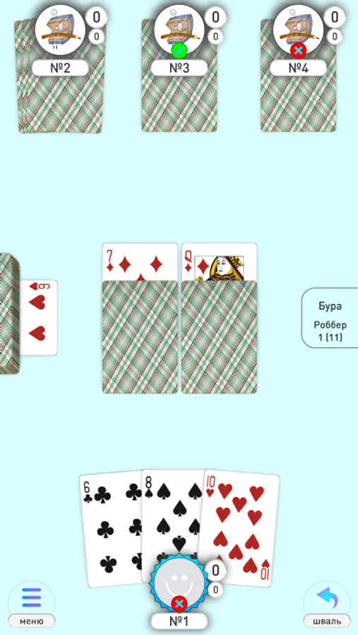 3 or 4 cards are dealt to each player depending on the type of game. A trump card is revealed. You can move with one card, with two or three cards of the same suit. If the opponent beats the turn cards, he takes the bribe for himself. If he cannot beat, discards any cards (according to the number of cards in the turn). After each trick, players draw cards from the deck, one card after each other, up to three cards in their hands.