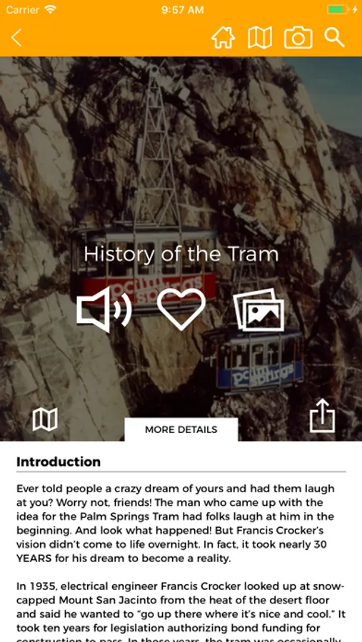 While you’re taking in the breathtaking views, prepare to be amazed by the augmented reality, fascinating stories, and fun, interactive content on the Palm Springs Aerial Tramway App! Enhance your experience on the legendary lift while you wait in line, explore the stations, and ride the tram itself. This location-based app features beacon-enabled technology that interacts with smartphones to show location-specific content as visitors move around the Mountain and Valley Stations. Through exclusive audio stops, learn about the storied history of the tram, the inner workings of the machinery, and the surrounding ecology and wildlife: there’s fun and educational content for everyone. The app features everything you’ll need to prepare for your visit, including weather conditions for the Mountain Station, Tram Cams showing a live video feed of the station takeoffs, and even fun photo filters to show off on social media. Also check out the augmented reality features, make a dinner reservation, or see what hikes and nature walks there are in the area. Get all the information you need and more, with FAQs, tickets, and current tram events.