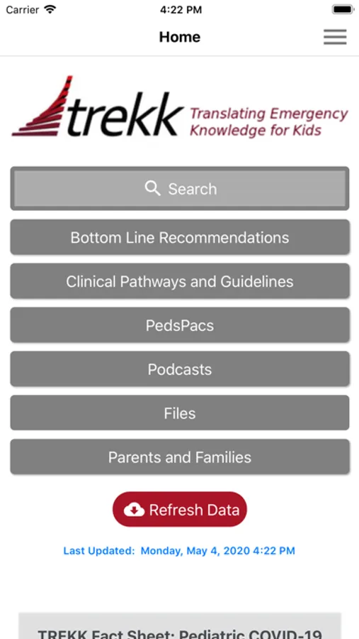 To break down this barrier, our app pulls content from our website and allows users to browse our resources offline. Once the documents are downloaded (using the Internet or cellular data), users can use the File tab to store PDFs and view them offline.