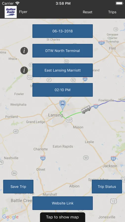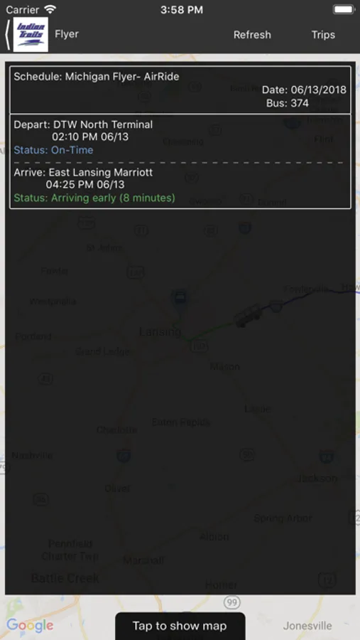 Indian Trails, a family owned company since 1910, provides bus transportation throughout Michigan and beyond. The Indian Trails Bus Tracker app allows you to plan your trip, provides bus stop locations and directions, departure times, and accurate predictions of arrival times for your bus.