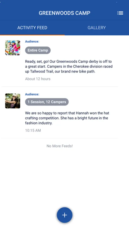 The Bunk1 Admin app lets you build an online community for your camp so that families can connect with your camp anywhere, anytime. Show off your camp with our password protected photo and video gallery, equipped with facial recognition technology, social sharing capabilities, and a custom photo gift shop for families. You can take photos in the app or upload photos from your camera roll. Keep families up-to-date with custom push notifications or text messages, or give them a glimpse of daily camp life with the Activity Feed. The Bunk1 Admin App lets you create a digital version of camp that gives your camp families an immersive experience— all in a few taps!