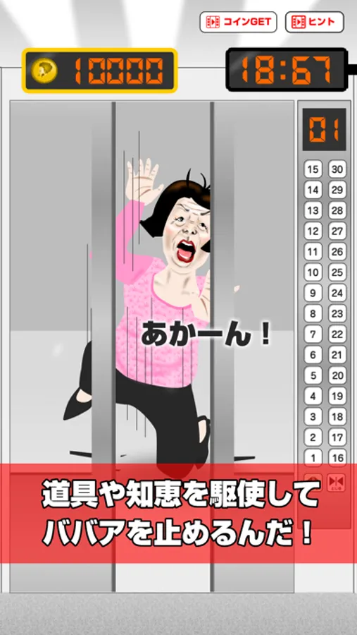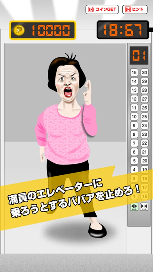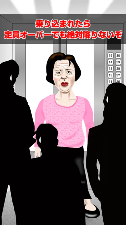 混んでいるエレベーターに無理矢理乗ってこようとするおばさんを、あの手この手で阻止しよう!