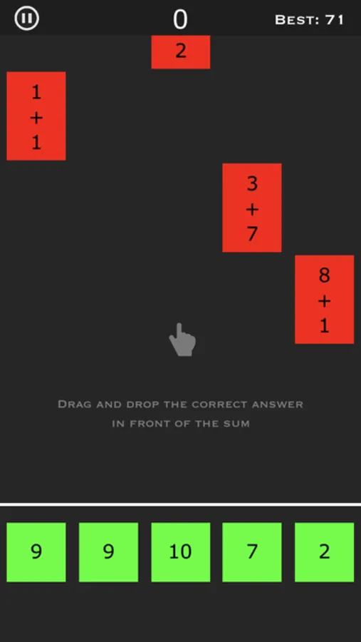 Drag and drop the right answer in front of the red sum block to earn points and DON'T let sum blocks cross the white line!