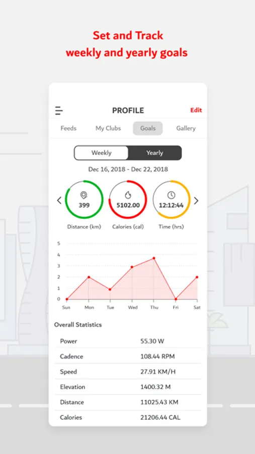 • You can set weekly and yearly goals in terms of distance to cover, time to ride and calories to burn.