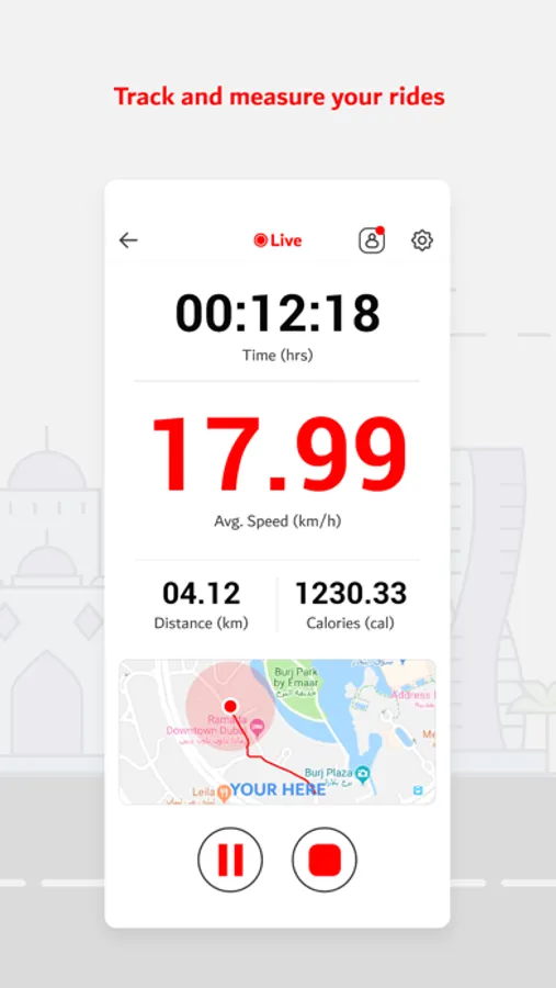 • You can record your cycling activities, the app captures the cyclist's speed, distance covered and calories burnt.