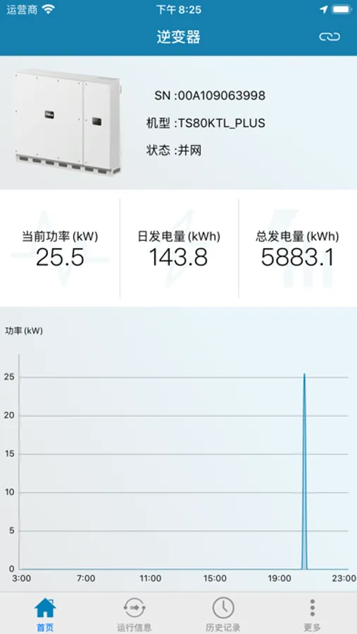 TBEA Solar 使用者可通连接逆变器Wi-Fi热点,读取设备的数据,对设备进行无接触维护;
