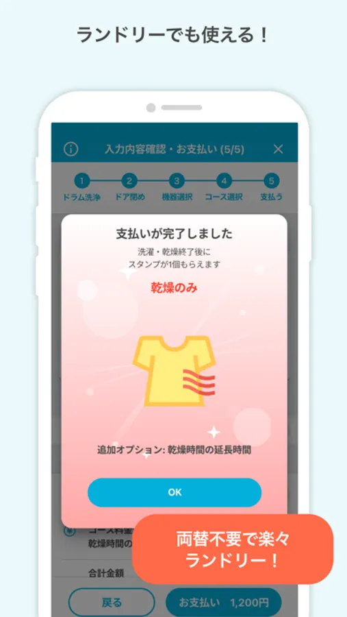 ランドリー店舗でのお支払いは、チャージ残高または対応するコード決済になります。