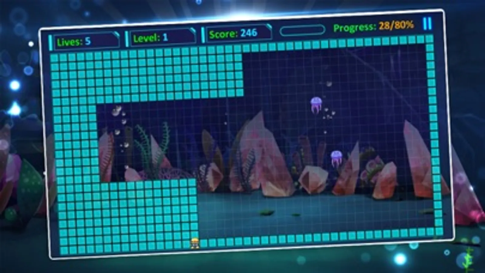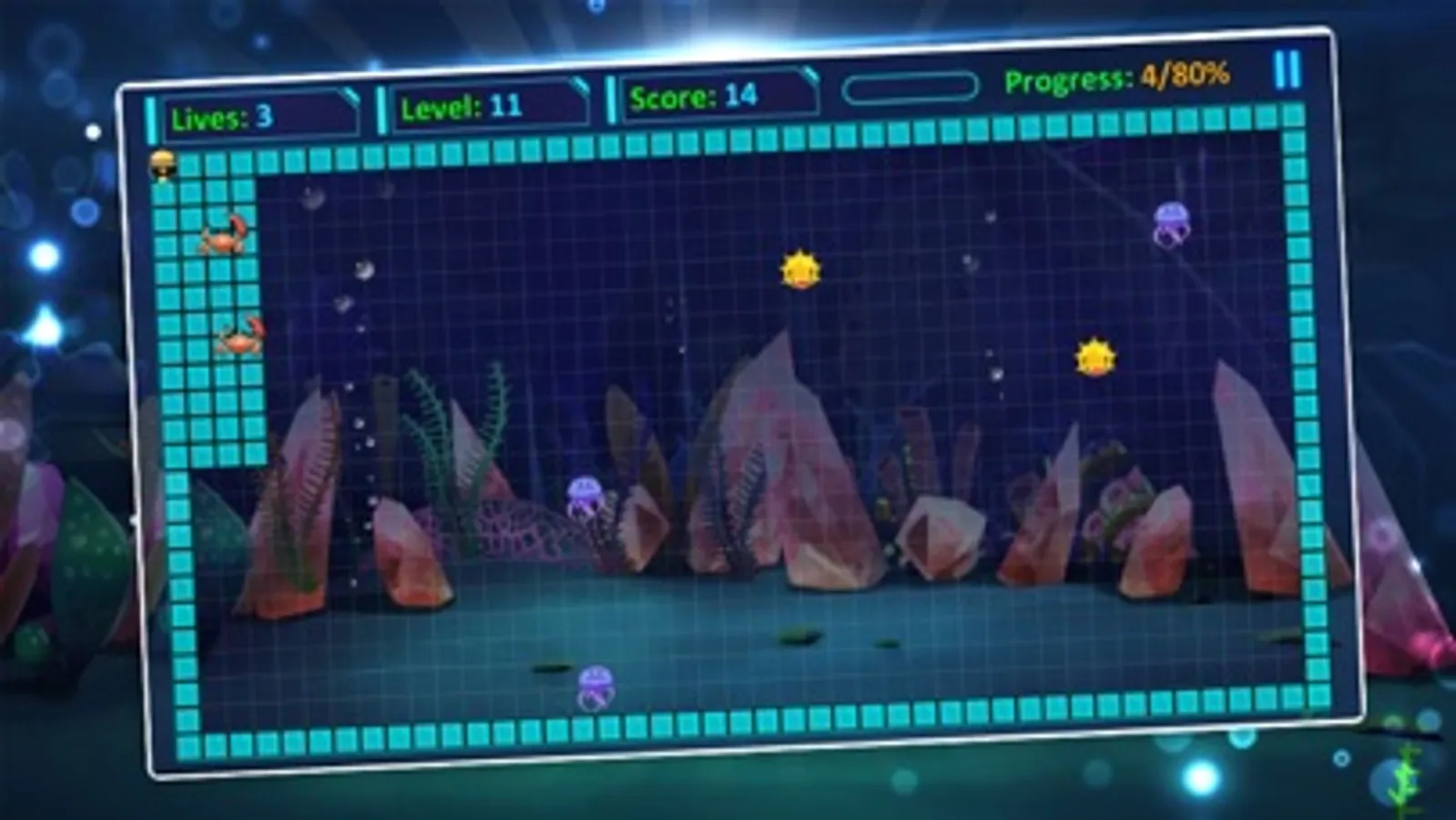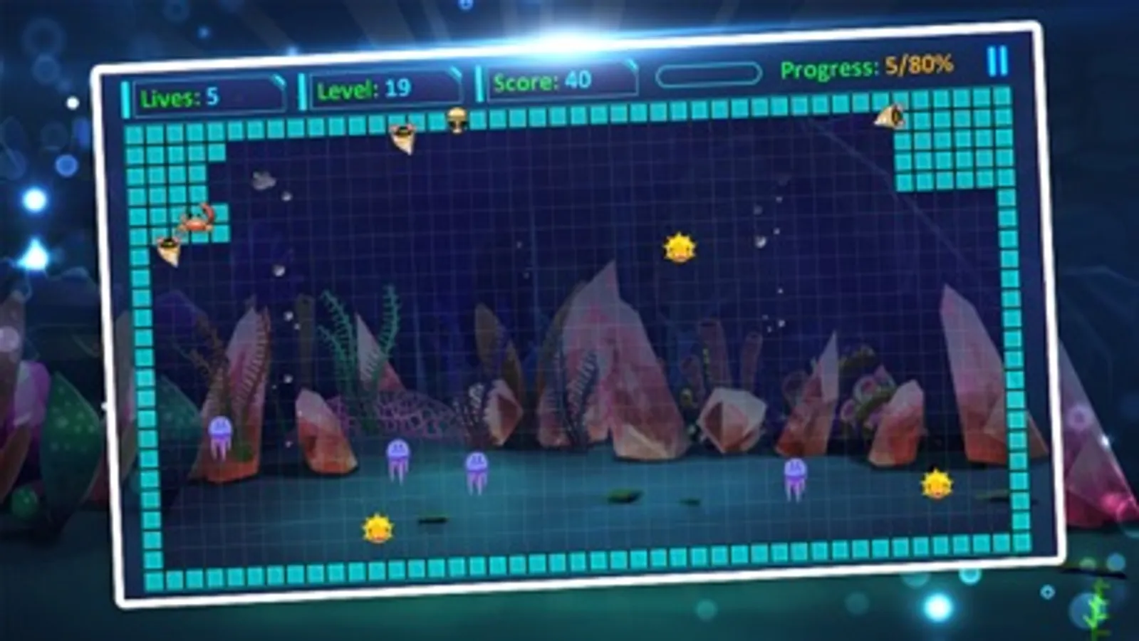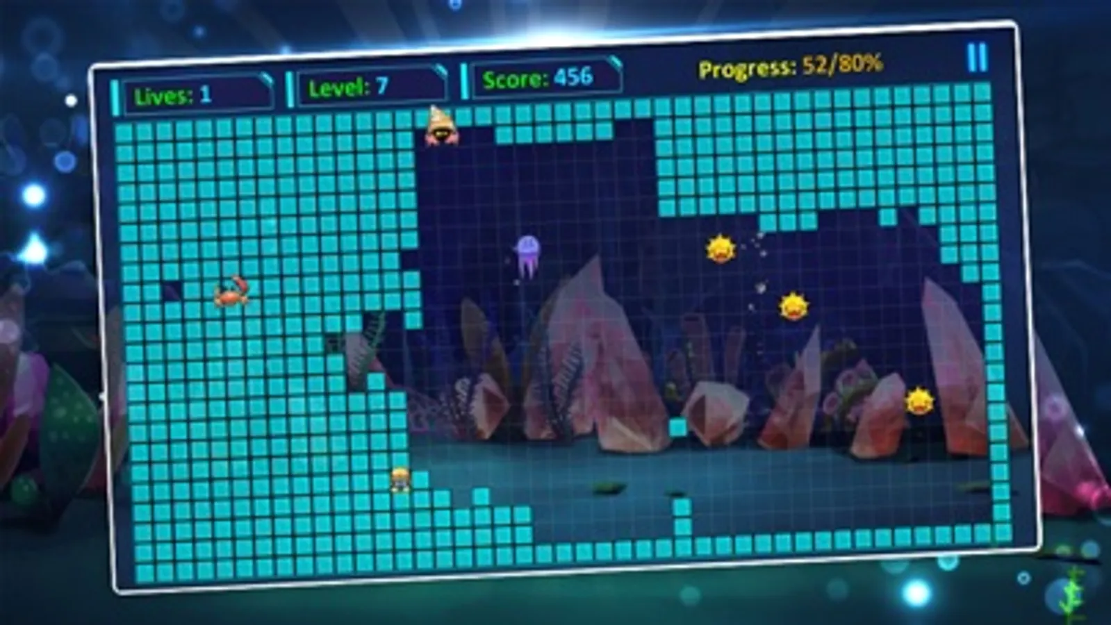 - Move player into the empty area and back to the wall to capture the area. Do not let the monsters touch super hero Fish or the wall that follows him.