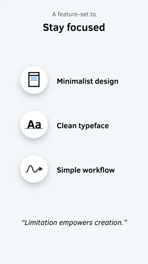 Limitation empowers creation. With plain text as the only input, you will keep your hands on the keyboard and stay focused on the notes.