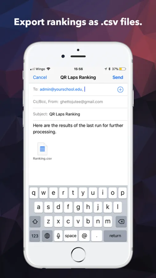Everything happens without a single click and without entering a single name! The app counts how often a QR code is shown. The students have their QR code scanned after each round. Enter a lap length and the app automatically calculates the total distance run and creates a ranking list. This can be exported as a .csv file for further processing.