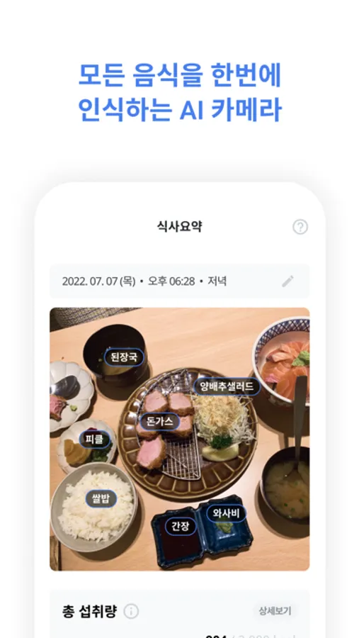 똑똑한 다이어트를 위해 AI카메라로 쉽고 간편하게 식사를 기록하고, 나의 식사패턴을 분석해주는 리포트를 확인해 보세요.