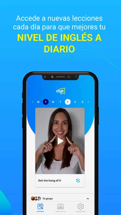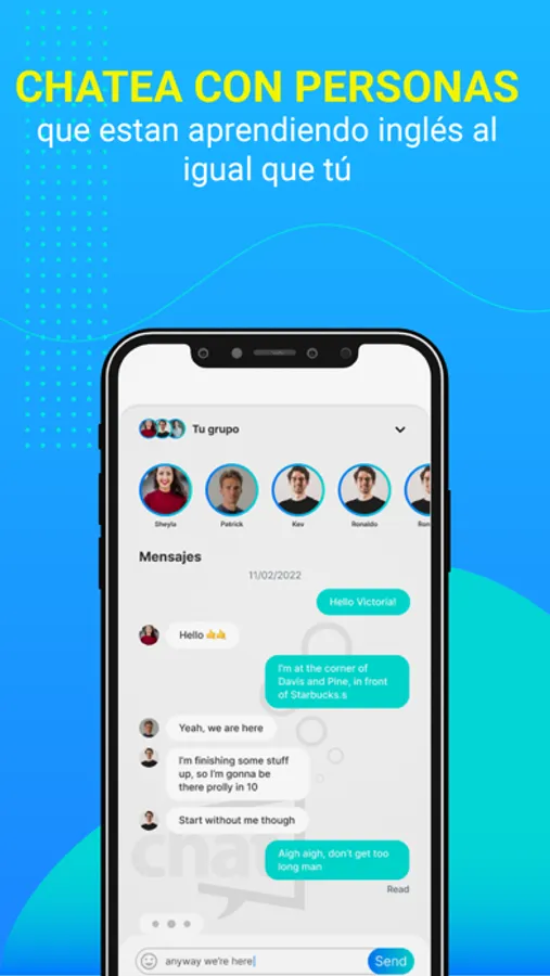 Descarga la app de chat de Open English y convierte tu celular en un espacio amigable y divertido para practicar inglés, desde donde estés, a tu propio ritmo y en comunidad.