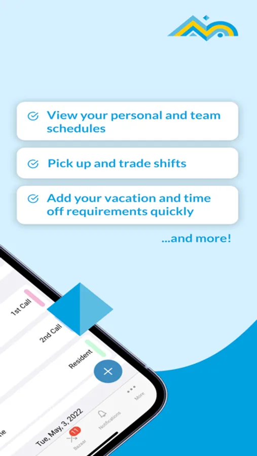The MeshAI mobile app allows members of teams using the MeshAI.io scheduling platform to see their upcoming shifts, message their co-workers, swap shifts, make vacation requests, add work time preferences, and get notifications about any scheduling changes instantly.
