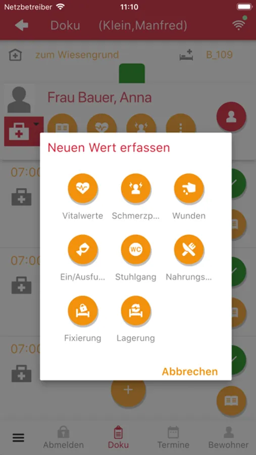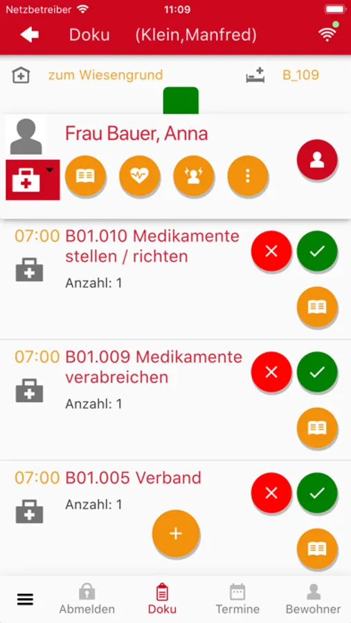 ProfSys stationär erlaubt die einfache und komfortable Bearbeitung der Pflegeliste, das Erledigen oder Ablehnen von Leistungen, Hinzufügen zusätzlicher Leistungen, sowie die Erfassung der Vitalwerte.