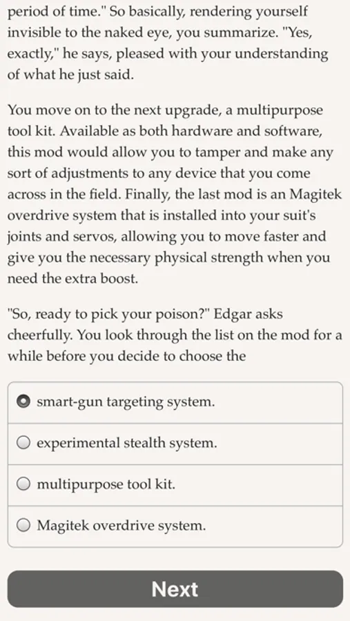 Authors just like you have developed these games using ChoiceScript, a simple programming language for writing multiple-choice interactive novels. Writing games with ChoiceScript is easy and fun, even for authors with no programming experience. Learn more at http://hostedgames.org