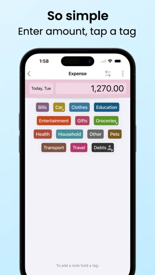 This expense tracker is the indie project made by a single developer. App is available for free, doesn't contain any ads or In-app purchases. Registration also is not required, and that is why all your data completely anonymous and could be transferred to app server only for app usage analytics (like most popular screens, which functions are frequently used, which can be removed etc).