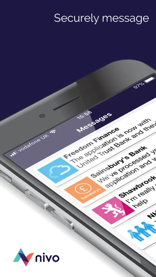 With Nivo the secure messaging app you can send and receive messages, photos, videos and files to/from organisations like lenders, banks, building societies, credit unions and professional services firms.