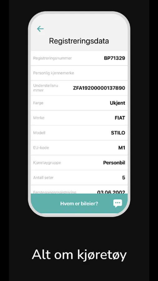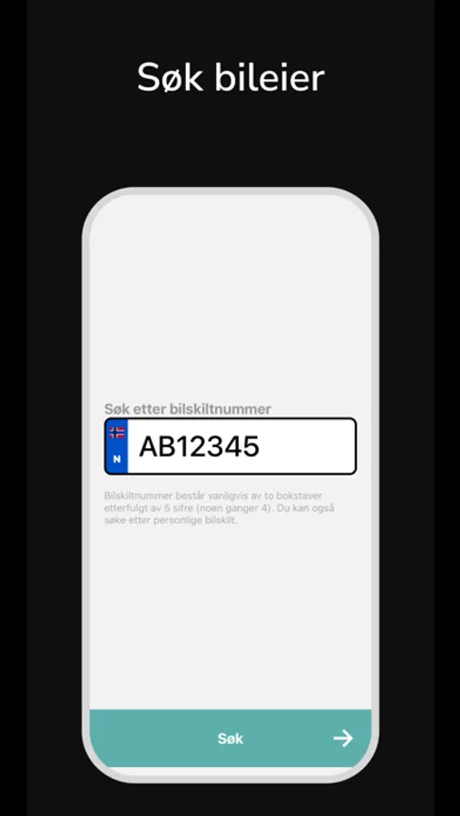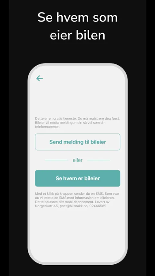 Appen gjør det enkelt og rask å finne eier til kjøretøy. Dette er betalt funksjon.