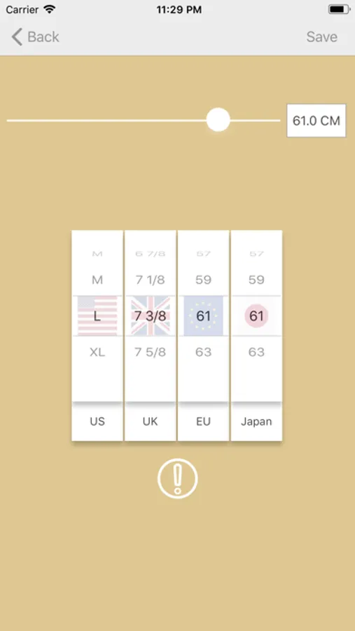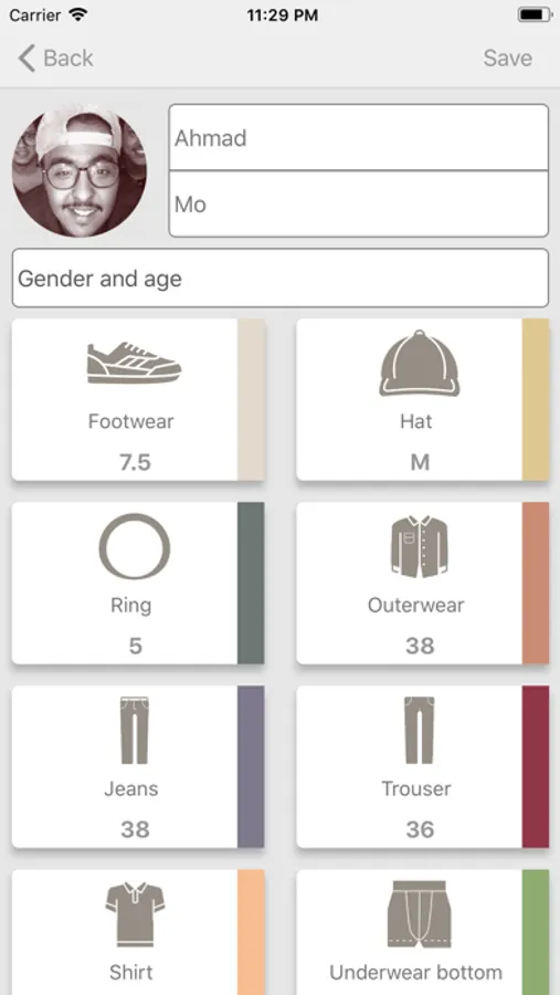 The app that will help you knowing all your clothes, shoes, hats, accessories, belts and underwear; simply by using the measuring tape. You can also create you own size profile and save it..