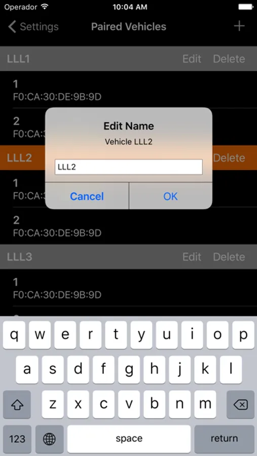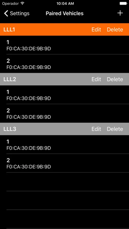 Main function is to pair SF300. After pairing, the SF300 Bluetooth Addresses of paired vehicles are located here. To switch between controlling multiple vehicles, press the desired vehicle to switch to it. The current vehicle the App is controlling will be indicated with orange lettering to the vehicle name and green lettering to the two SF300 headlight devices. All other devices will have gray lettering to indicate it is currently not selected. To delete or edit each vehicle, press the Delete or Edit button next to the vehicle name. Pressing it will enable user to edit or delete vehicle’s SF300 BLE connection, vehicle name, and/or headlight model types.
