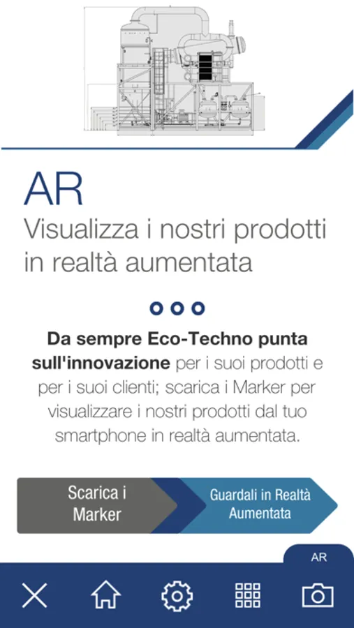 Un unico potente strumento oggi su smartphone e tablet. Scoprite i nostri impianti con la rivoluzionaria tecnologia della Realtà Aumentata. Un'app in continua evoluzione che permetterà presto di gestire i nostri impianti con un solo dito.