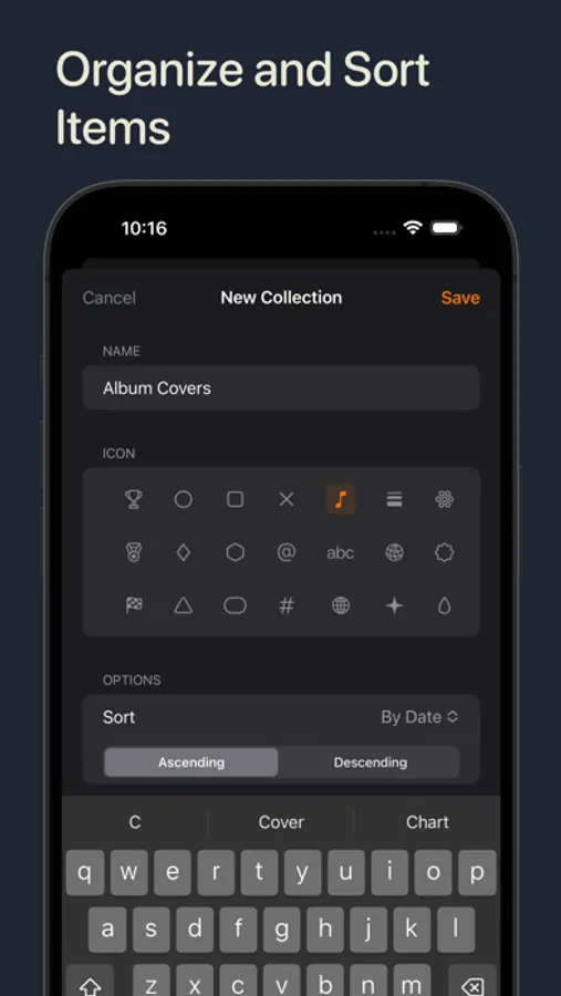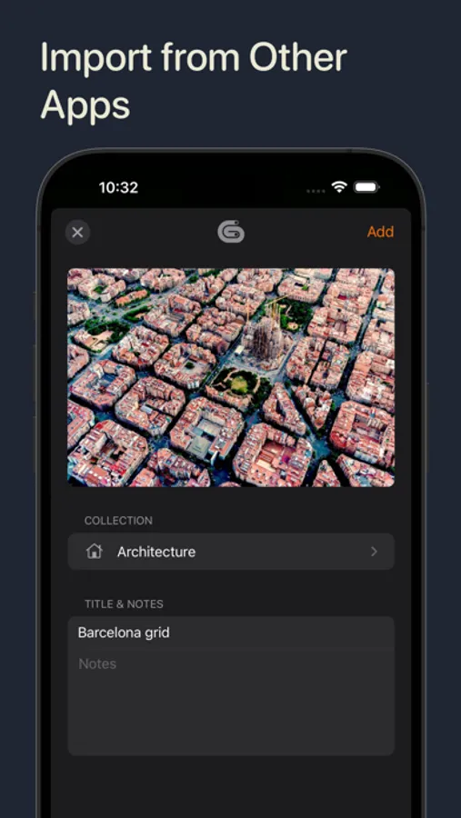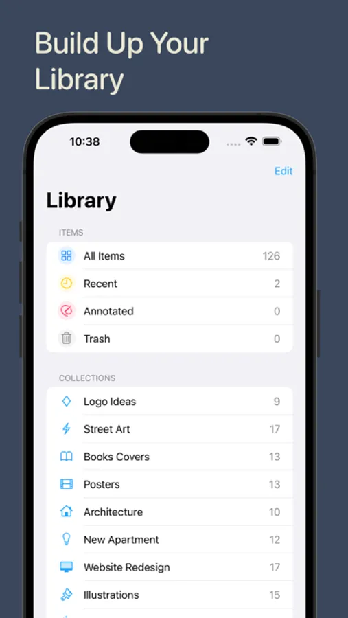 There are many ways to grow your digital collection - snap a photo, import from your camera roll, choose from the Files app or copy it from the clipboard. You can also use the Gathered share extension to add items from other apps.