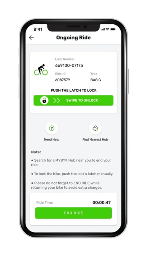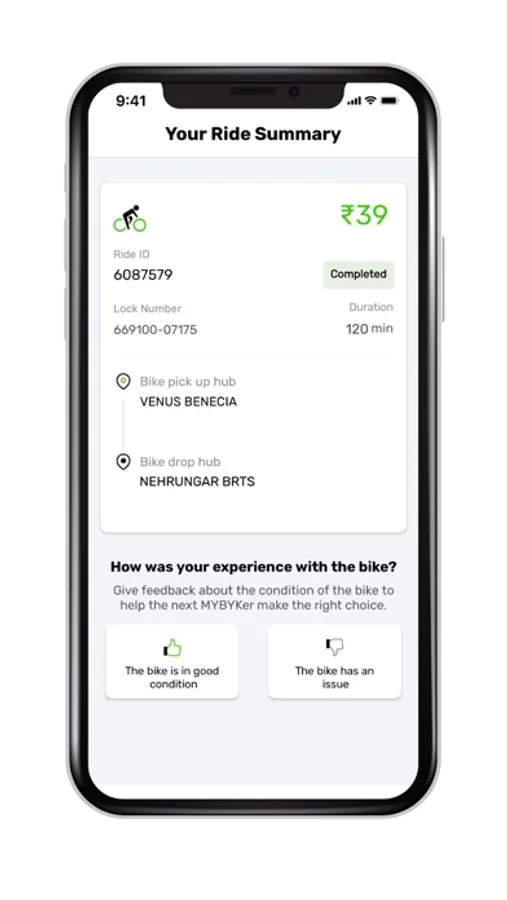 We take care of all the repairs and maintenance of the bike. If you're facing any problem with the bike, just drop it at the MYBYK hub near you, mention the issue after ending the ride. Take another bike.