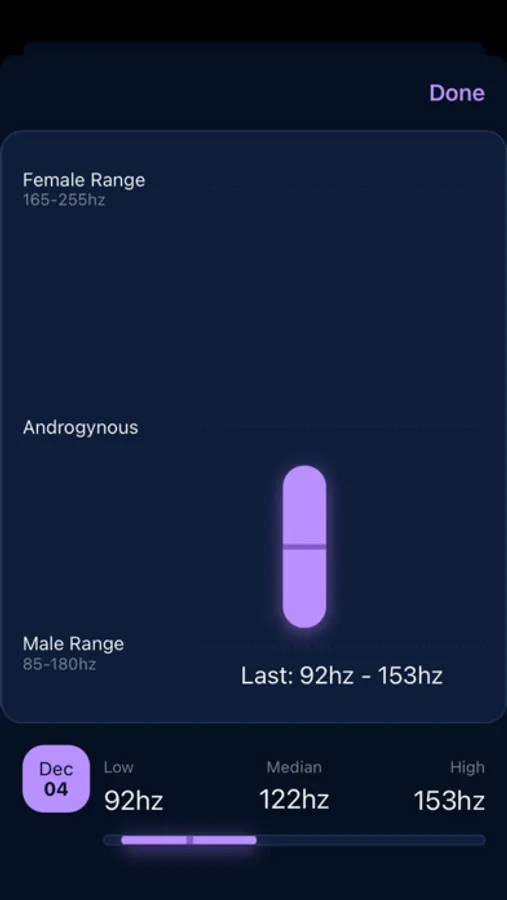 Ever wondered if your voice appears more "male" or "female" - or neither? You can now easily find out by recording a one minute sample with Voice Pitch Analyzer. It’ll analyze your voice and calculate your average pitch range.
