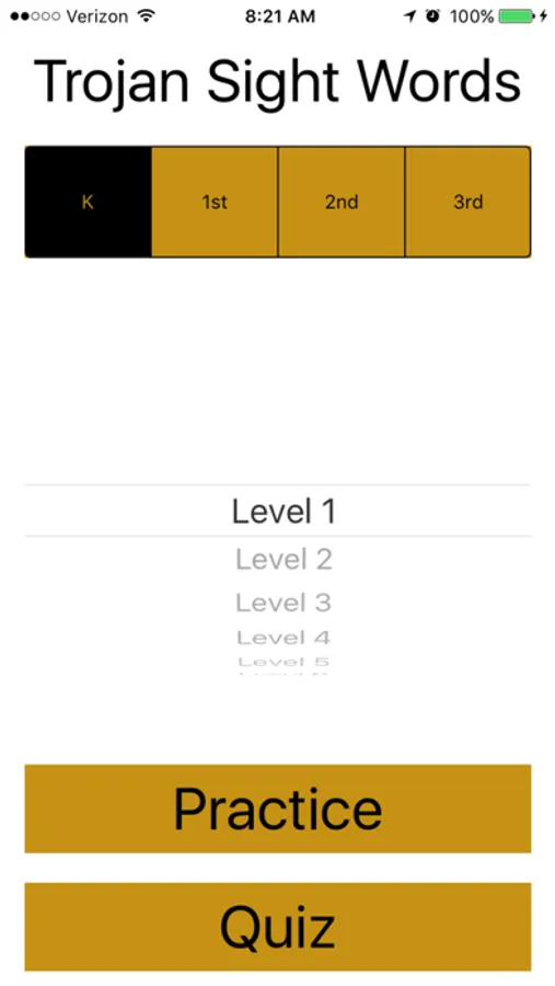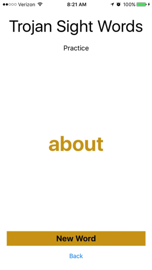 The Practice Mode shows each word from the list and when pressed will say the word.