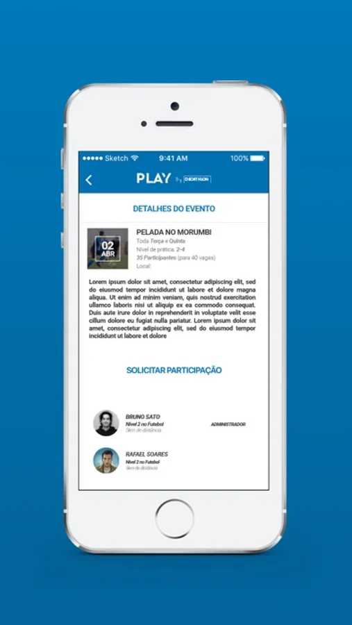 Você pode criar e organizar o seu evento esportivo/partida, convidando apaixonados pelo