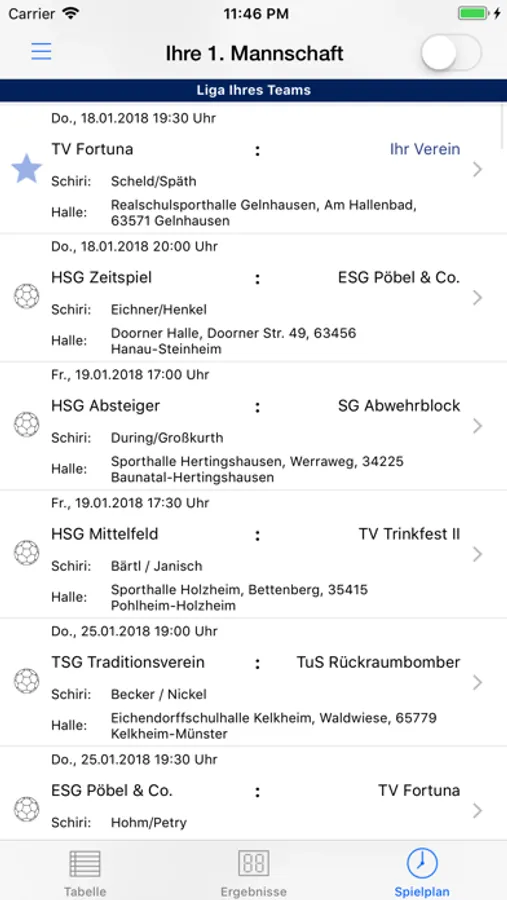 - Live-Ticker und Torschützen für die Spiele aller Mannschaften (sofern vom Verein oder Verband genutzt)