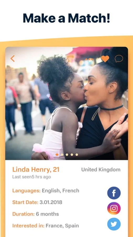 Find AuPairs and Families that match your preferences, view pictures, check their social profile, chat to them, agree on conditions and get ready to meet your new family or AuPair!