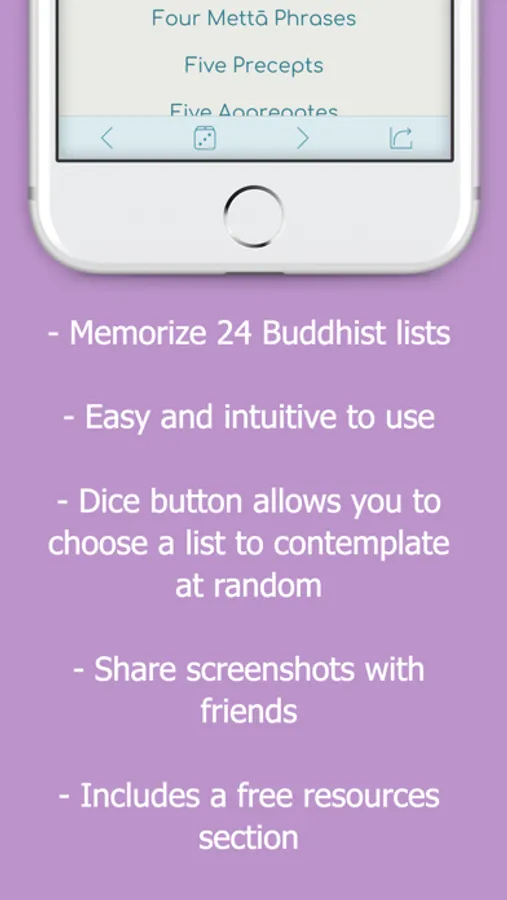 With BUDDHIST LISTS you can recall just the right Buddhist teaching in a moment's notice, and share screenshots with friends to help them remember too.