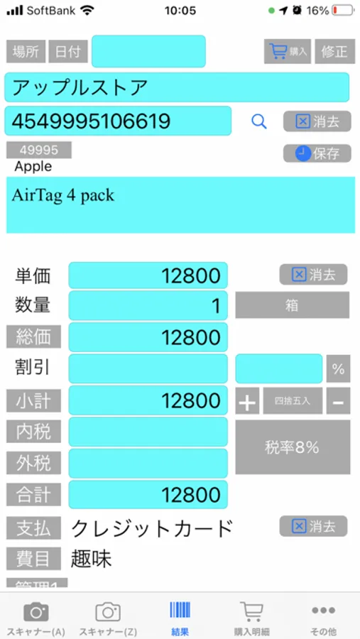 iPhone のカメラでBARCODEをスキャンしBARCODE情報のデータベースを作成します。